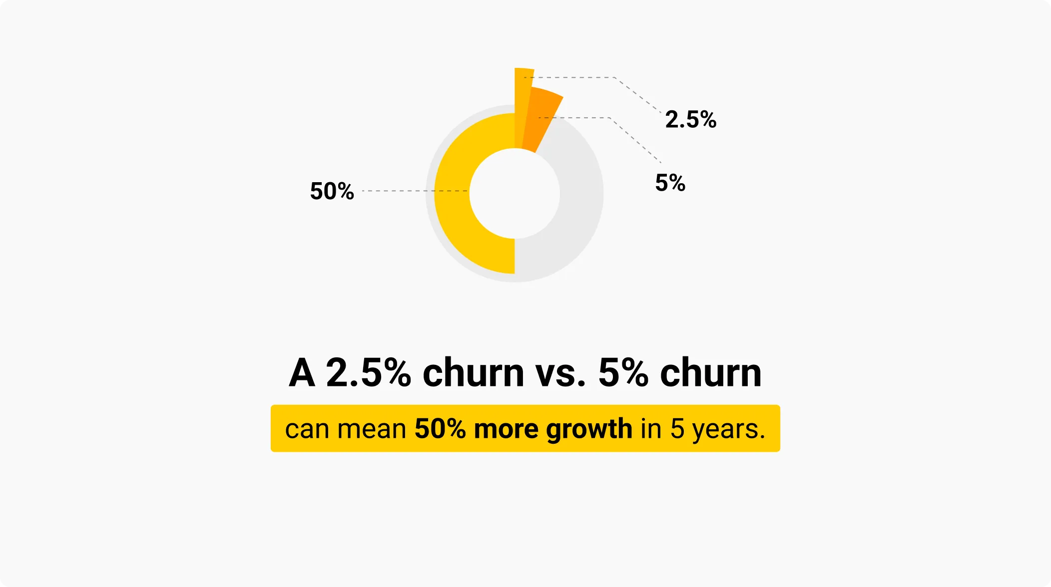 According to Forbes, “the difference between a 2.5% churn and a 5.0% churn could be the difference in building a 50% larger business in a five-year period of time.