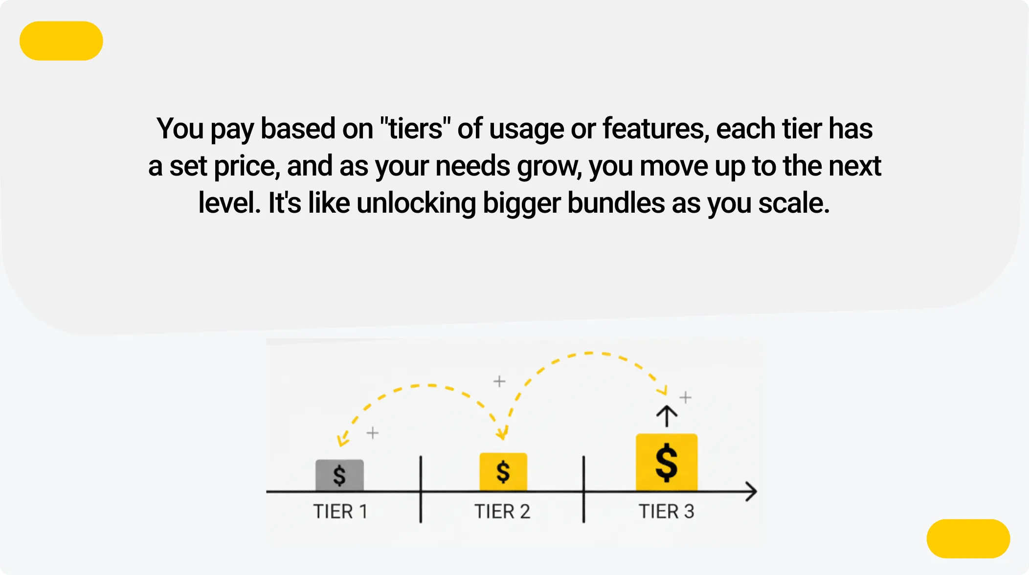 Tiered pricing has multiple tiers at different prices, each with a specific set of features, usage limits, or support levels. It is the dominant model used in B2B SaaS currently.
